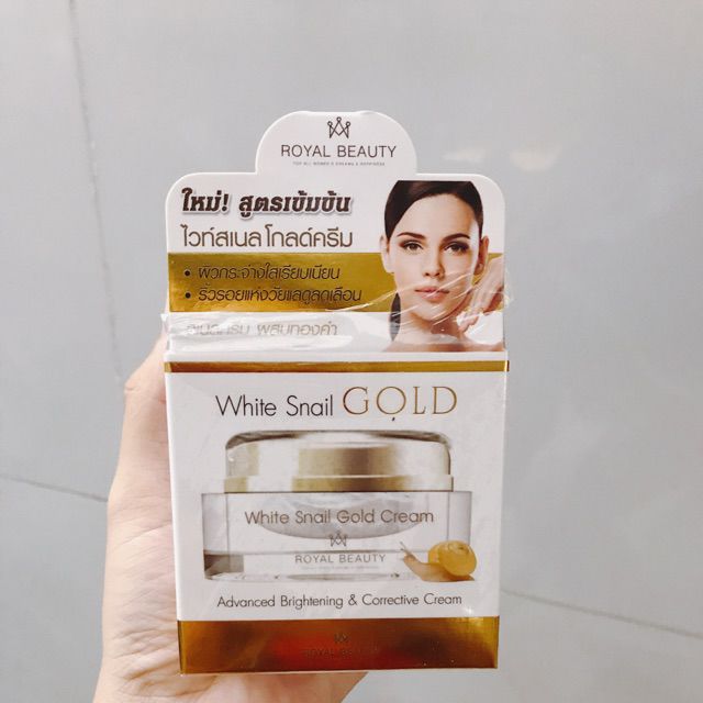 Royal Beauty White Snail Gold Cream. Royal Beauty White Snail Gold Cream ครมเมอกหอยทากแบบกระปกใชจใจจากเซเวน 0 0 วนพฤหสบดท 21 มกราคม พศ. Cung cấp dưỡng ẩm cho da với chiết xuất từ ốc sên. SNAIL WHITE GOLDAnti-Aging skin cream for youthful and healthy skin with Helix Snail Extract Micro-Alga Extract Red Seaweed Extract the Polymer Network. Anti-aging cream formulated with special SNAIL SECRETION FILRATE wheat extract and Pure Gold 24K Lipobelle which rebound signs of aging RESTORE and recharge for radiant skin DIMINISH visible wrinkles FULFILL moisture for firmer skin.